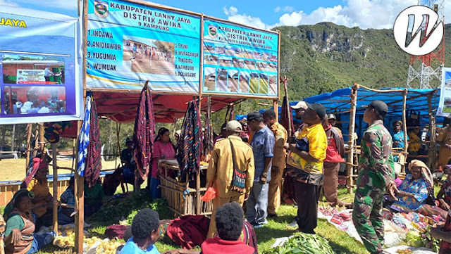 LANNY JAYA - wartaexpress.com - Dalam rangka membantu untuk meningkatkan perekonomian masyarakat Pegunungan Tengah, Plt. Bupati Lanny Jaya bekerjasama dengan Satgas Yonif Mekanis 203/AK meninjau acara UKM di Distrik Pirime, Senin (28/11/2022).